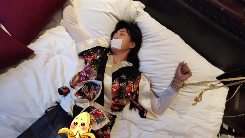 【JS】DM 日系性感睡衣 床上大字捆绑 撕袜 封嘴 DD强震