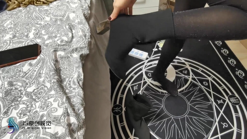 技师离去后,女子一点一点的将嘴里的丝袜掏出,并活动着手臂,表情中流露处满足感。