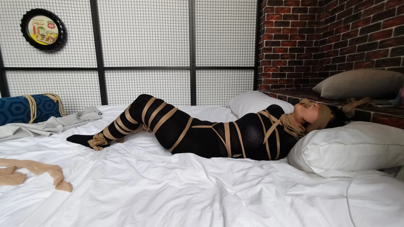 › 【JS】琳洛-黑丝连体衣,全身连裤袜紧缚 蒙堵