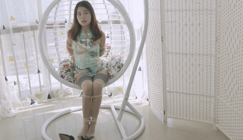 【4K映像】琪琪的夏日午后,摇篮,旗袍,长筒袜,高跟鞋,丝袜勒嘴,五花大绑。