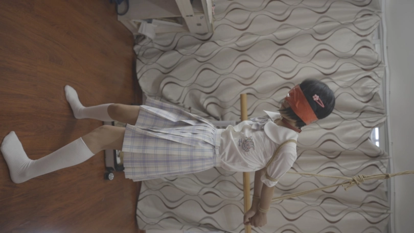 安妮被要求绑着站在平衡球上,同时保持牛子和人不掉下来~好可爱!被玩弄到脚失力的安妮不断哀求把她放下来,怎么可能这么简单就放下来呢,于是脑洞一开把她挂上舞蹈杠玩弄