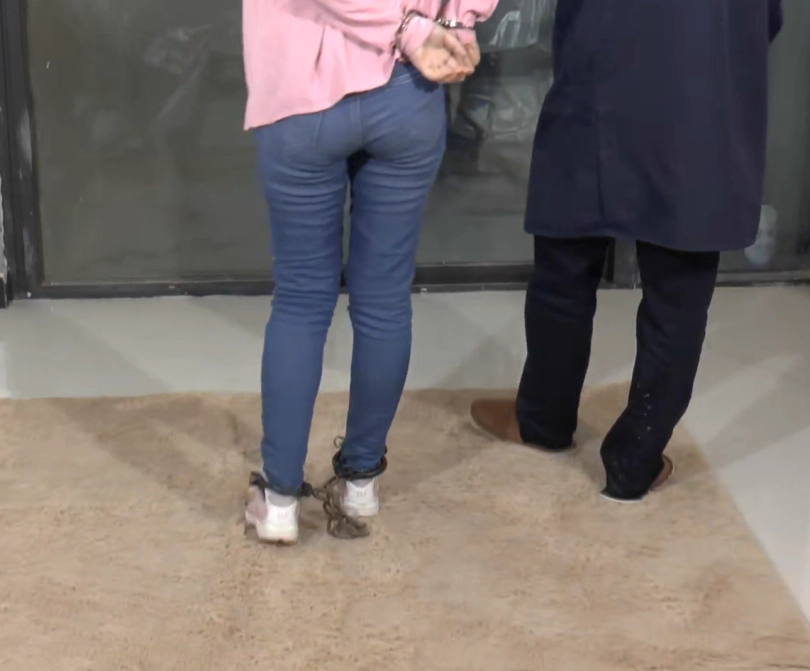 紧身牛仔裤,白色T恤,粉色外套。邻家女孩的样子,看着还是不错的。喜欢五花大绑和反铐的朋友们不要错过哦。