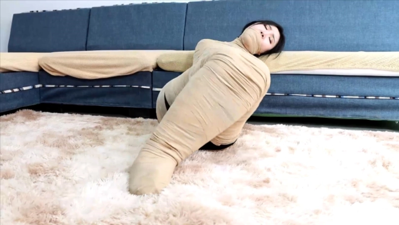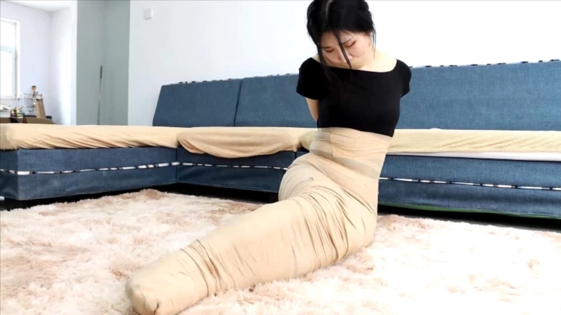 其实参考的欧美的一部有趣的拘束木乃伊捆绑短篇,请来了演技非常不错的吴晗美女,黑丝美女突然被胶带包裹拘束,美女不停的挣扎但反而被绷带包裹的越来越多,最后全身都被包裹,甚至连脚趾和手指都被包裹成一团完全无法动弹~