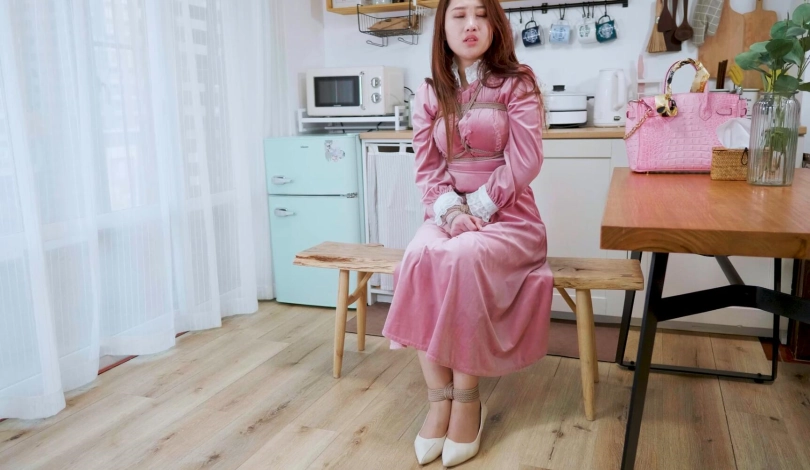 › 【4K映像】粉嫩佳人,粉色长裙,粉色包包,连口球都是粉的
