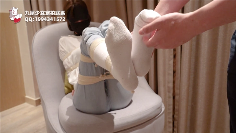 小九尾的常服牛仔裤+白袜被全身捆绑!TK双足调教,
