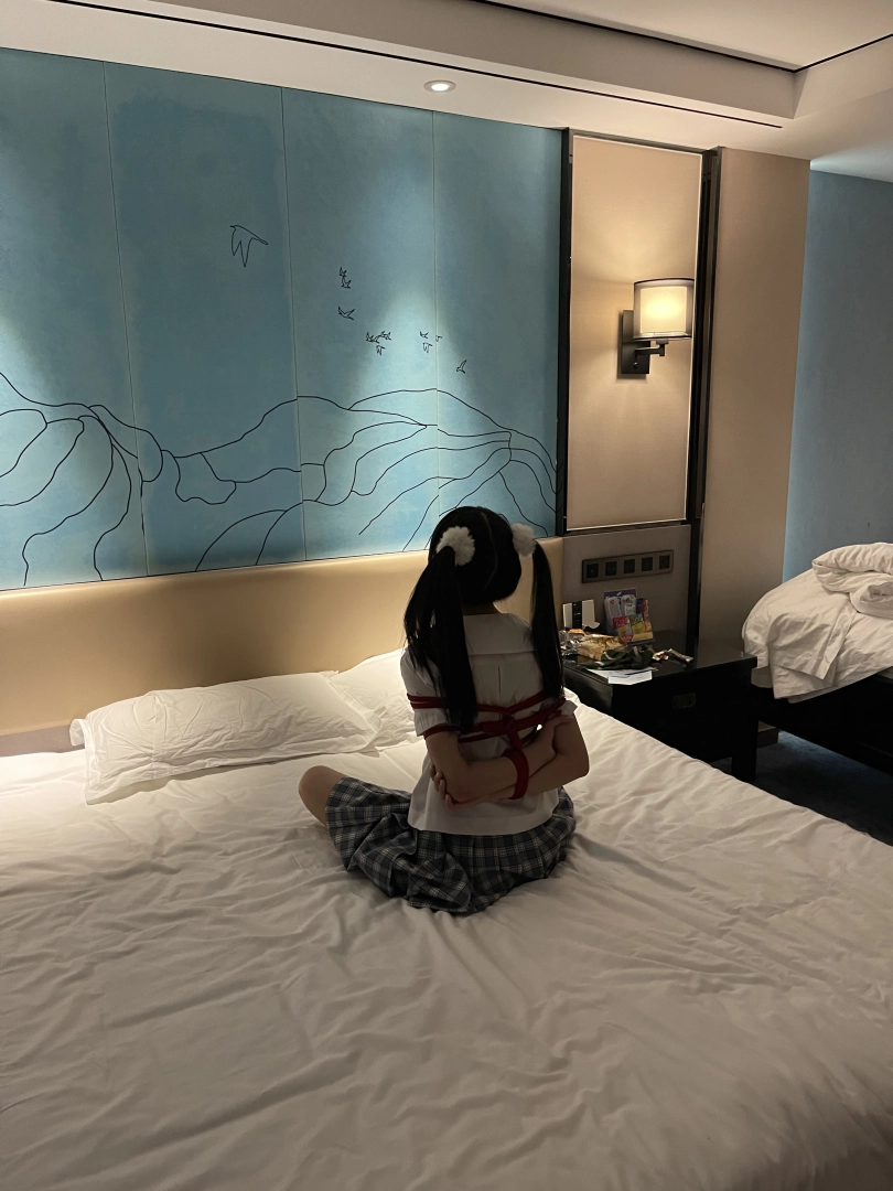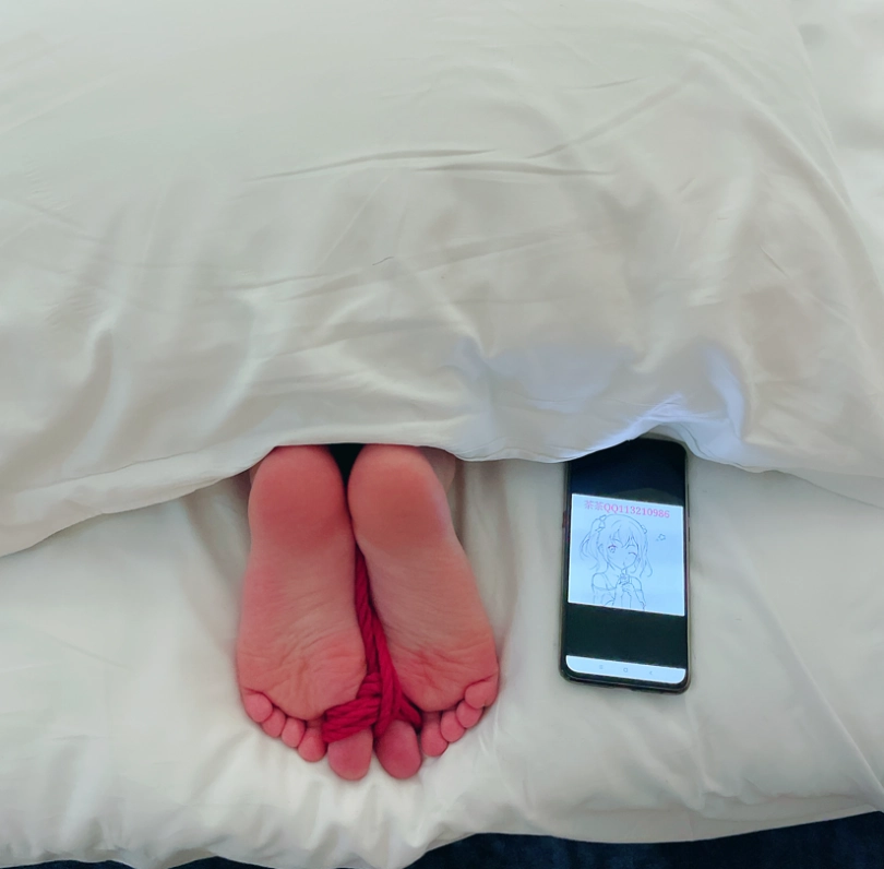 本期视频中把茶茶双手双脚紧紧捆绑起来,连可爱的脚趾也不放过,紧紧绑在一起!然后命令茶茶趴在床上,我坐在茶茶脚腕上,把茶茶的脚面紧紧压在床上,只有两只羞红的脚底在胯下可爱的扭动着。
