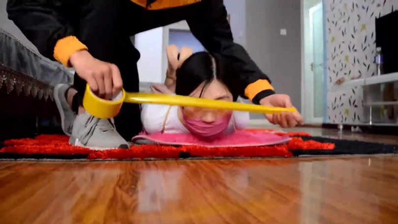 看点:驷马严厉捆绑;拍照羞辱+胶布绷带缠绕封眼;原味连裤袜套头;呜呜闷哼挣扎。