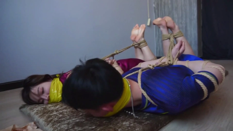 片段6:美女琪梦和表弟被入室劫匪捆堵折磨,还被胶布绷带一圈圈缠绕封嘴。
