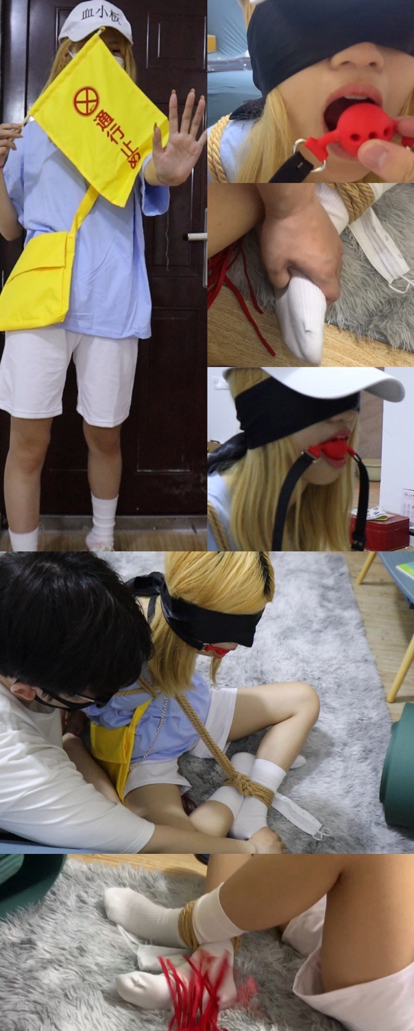 顺从的带上饱满的红色口球的棉袜女孩,(专门找了黄头发的女孩子