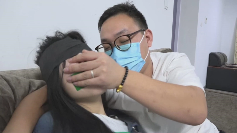口罩男从包里拿了个毛巾,要塞到了姐姐的嘴里。姐姐特别不愿意,左扭又扭,口罩男捂住姐姐的鼻子,姐姐被迫张嘴呼吸,就这个空档,被口罩男用毛巾塞住了嘴。