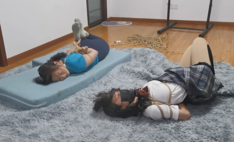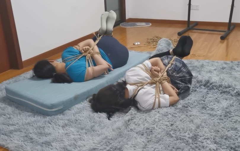 诗诗拍到一半,她的小姐妹突然打电话要过来看一看。既然送上门的话,当然是一起绑了呀~~~~。解不开的话,还要加挠痒痒哦