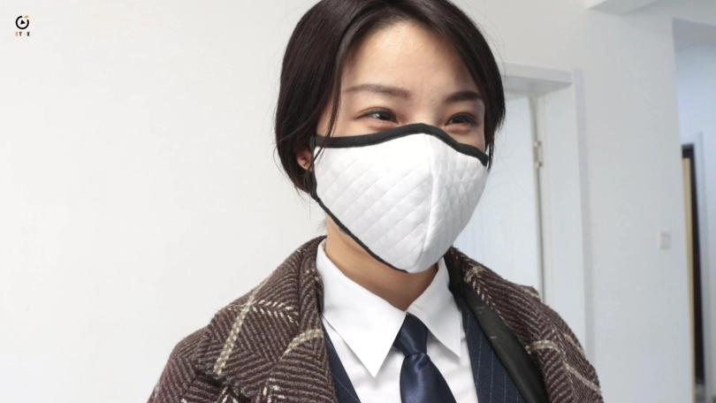 门铃响了,保洁小姐姐穿着长风衣,双手插在口袋里,身上挎着一个小包,脸上带着的白色棉口罩,眼睛带着笑容,但却一直不说话。。。。。