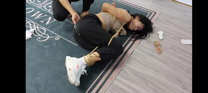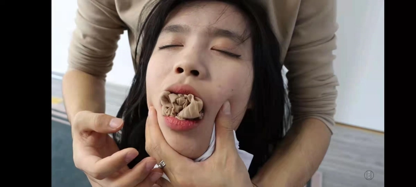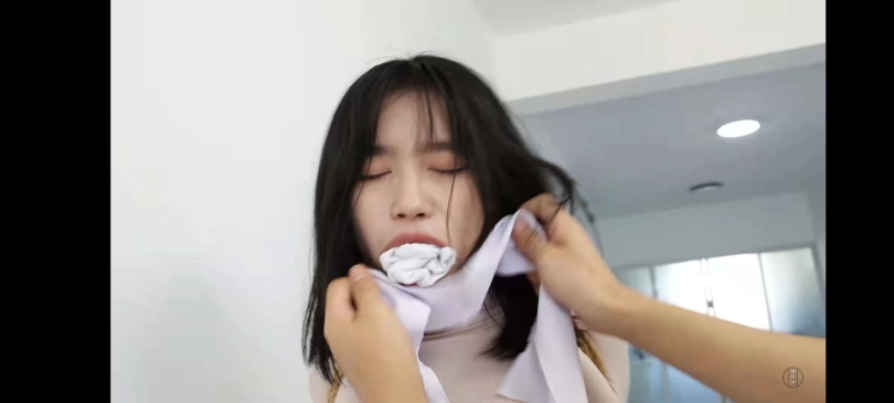 用了内裤 丝袜 丝巾 毛巾等8种物品对新模小艾进行严厉堵嘴 也用胶带 白布 口球等进行封堵 让小艾无法吐出嘴里的物品 打结的股绳 勒股绳让小艾很难受 不断地打屁股也让小艾红了脸 最后小艾也讲述了被堵嘴的感受
