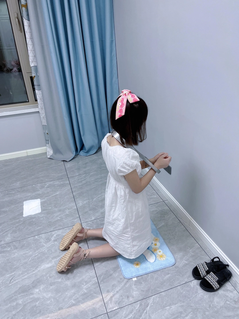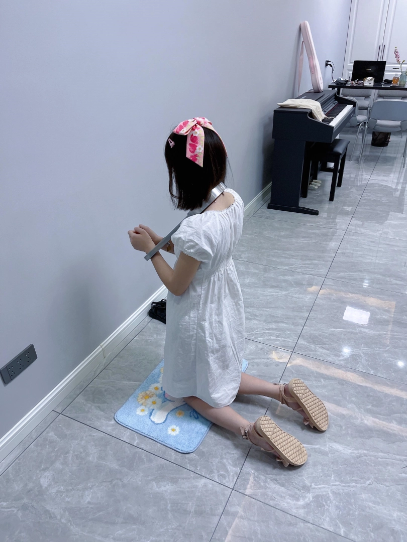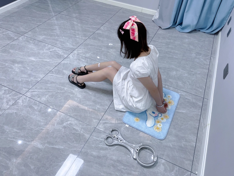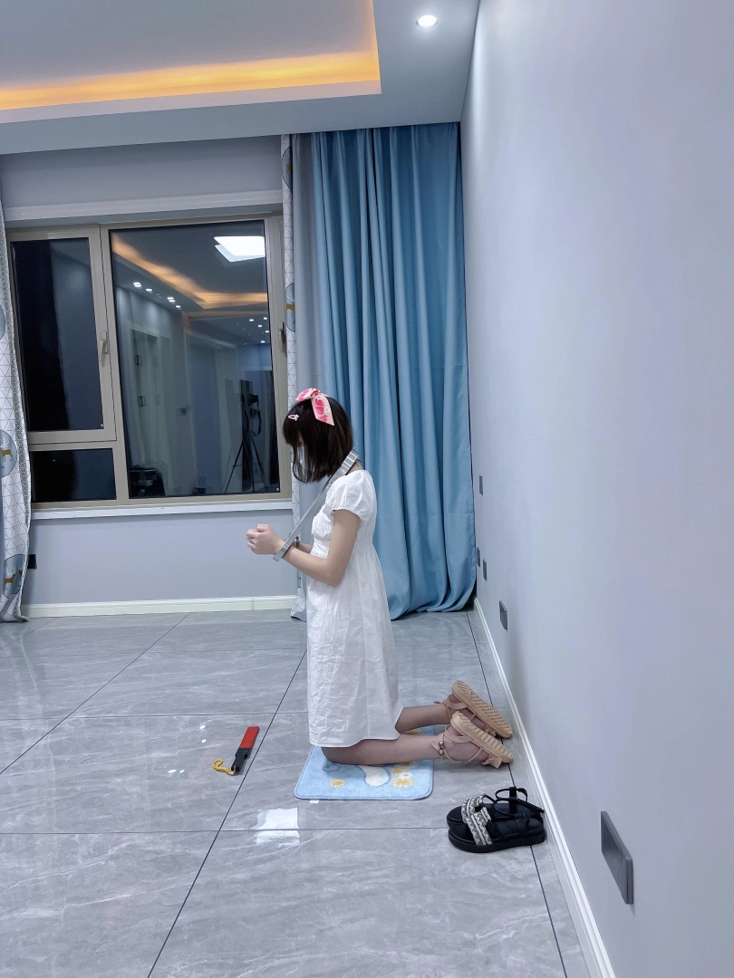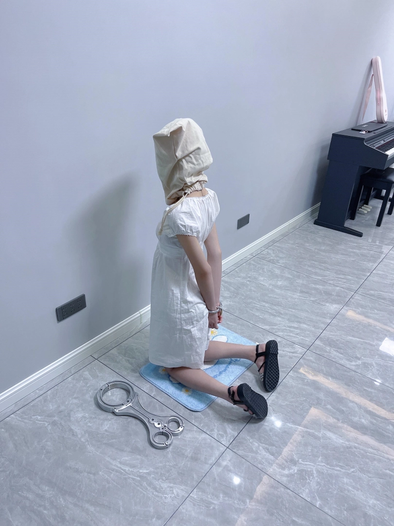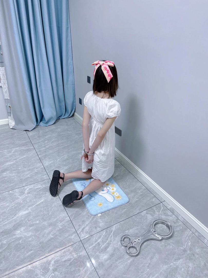 更换监狱内两种款式的凉鞋并展示。让小囚犯茶茶跪在地上,面壁思过。
