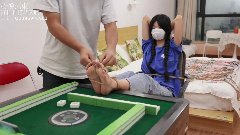查看完整版本: 【心悦艺束】超可爱得00后妹子UU试镜最终章,双手脑后缚,脚掌脚趾全绑麻将TK,试镜得地方刚好有一个麻将桌,干脆就让UU体验体验不同麻将花色摩擦脚底都是什么感受。
