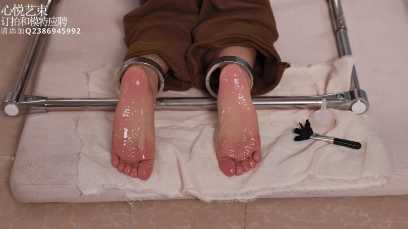 呀,这个就是一个足控向的作品了,35的小脚丫,超级娇小玲珑,被K9架禁锢住,一点办法没有,再倒上超多的润滑油,突出的就是一个“润”。挠起来会拉丝的润。让我们把黏黏的液体尽情的涂抹在这双娇小的玉足上面吧。