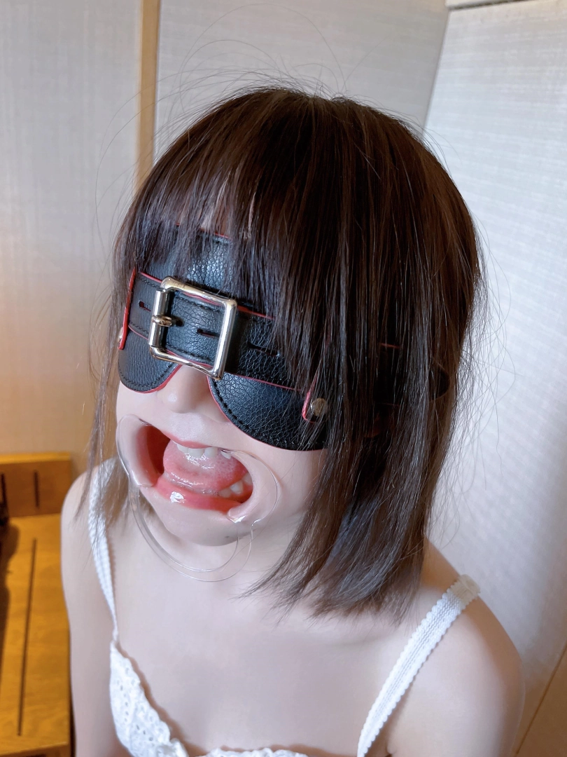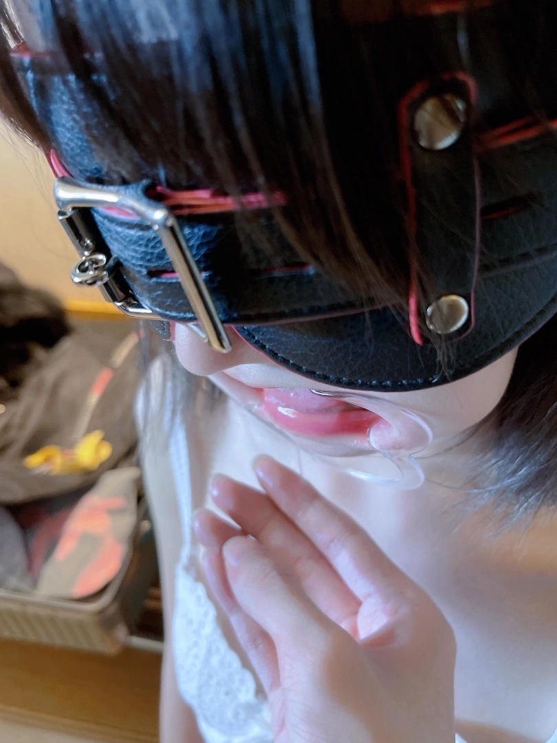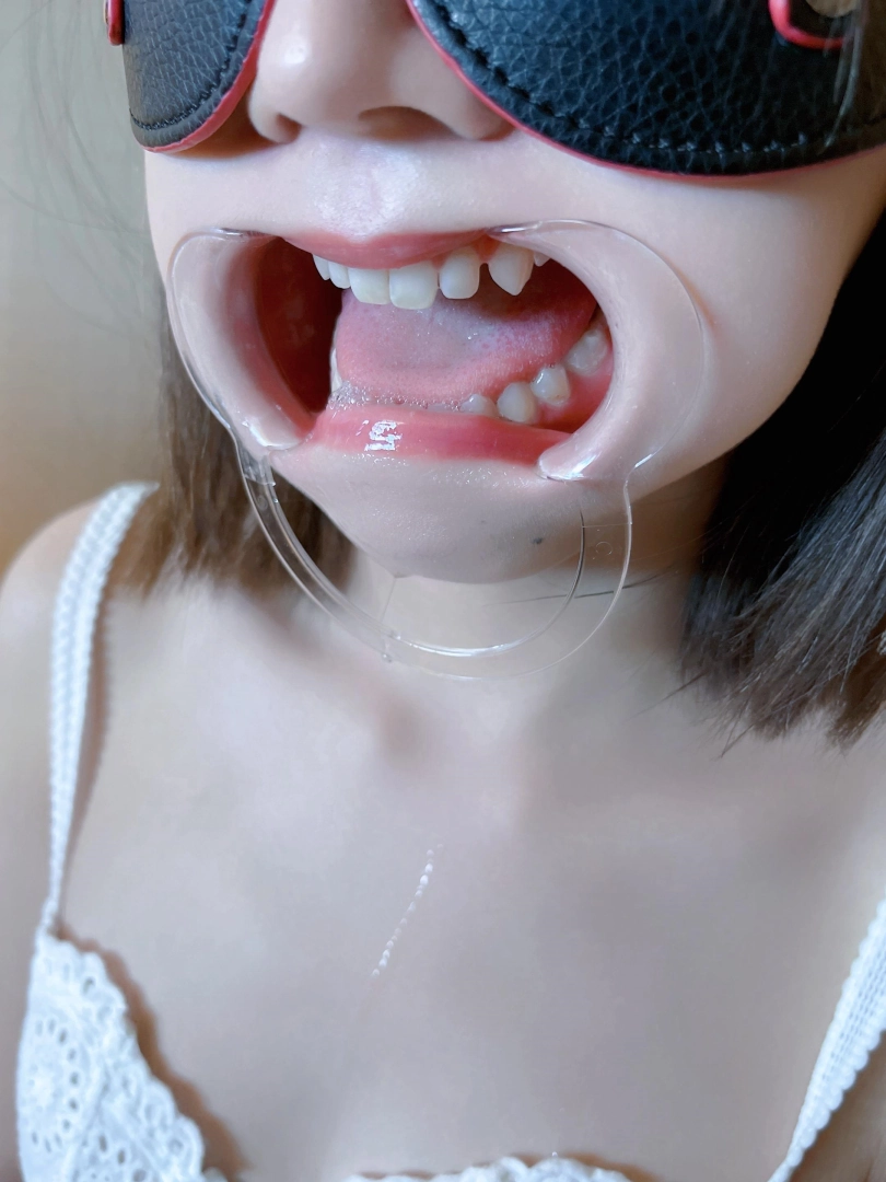 为了增加羞耻感,还带上了颜面破坏的一次性扩口器,用手指玩弄茶茶的舌头和口腔内壁,把茶茶羞的口水流的捯饬都是。并且还要让茶茶戴着扩口器吃香蕉...
