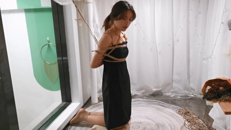 圈里好久不见的葡萄,这次绑的是日式紧缚,然后跪着吊在栏杆上,这么直直的跪着让模特很难受,只剩下无助的挣扎了。