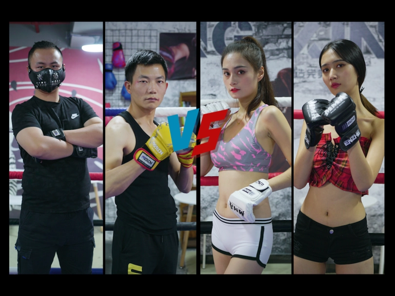 Xiaodie was exercising alone in the gym.Two men entered the gym.One of them had been beaten and ridiculed by xiaodie.The man came to avenge.