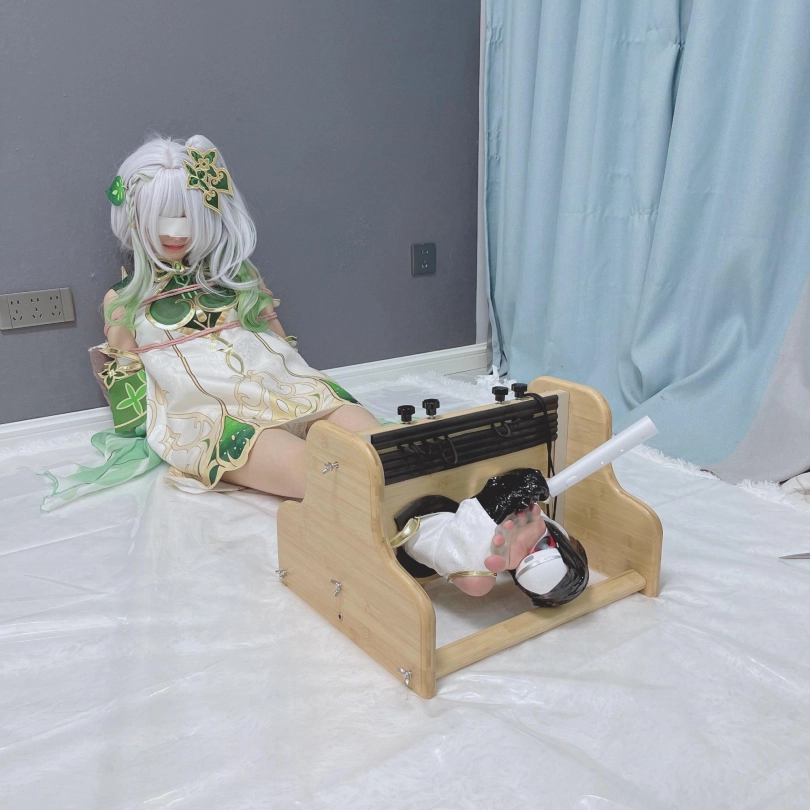 小草神醒来,发现自己被紧紧绑住,一双白嫩可爱的小脚丫也被死死卡在足枷里牢牢锁住,动弹不得。