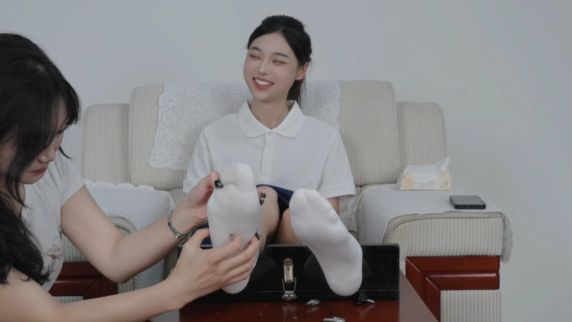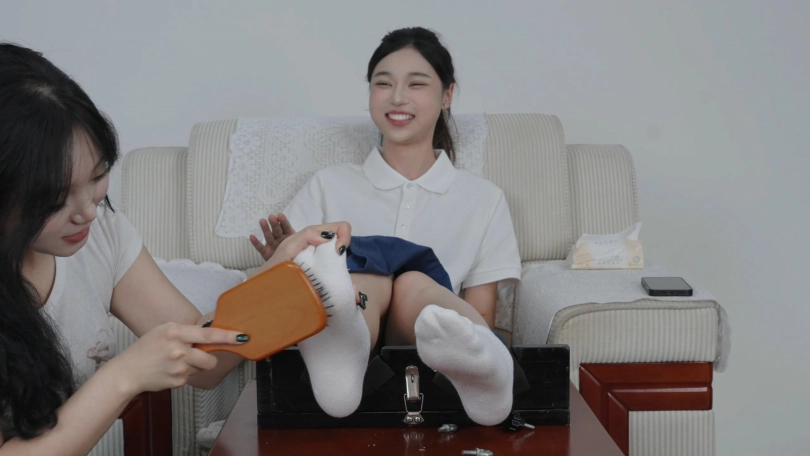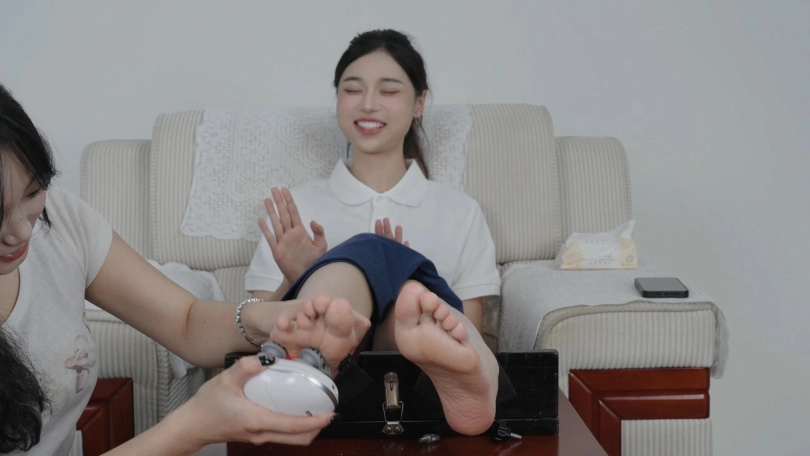 朵朵是纯素人,一位播音专业的大学生,长相清纯甜美,平时也比较热拍运动所以气色特别好,我们是在羽毛球馆一起打羽毛球认识的,一开始我说我是做摄影工作室的,有一些运动装需要模特拍摄,让她来兼职模特拍一下,之后熟悉了,就邀请她拍摄挠痒痒视频,她也比较信任我,索性就答应了,所以咱们用的道具是比较基础的,但好在她挺怕痒的,整体拍摄效果不错,拍出了我想要的.