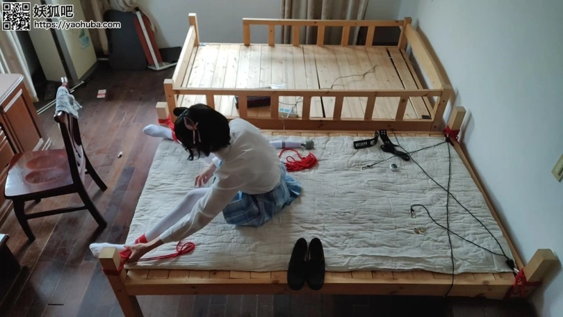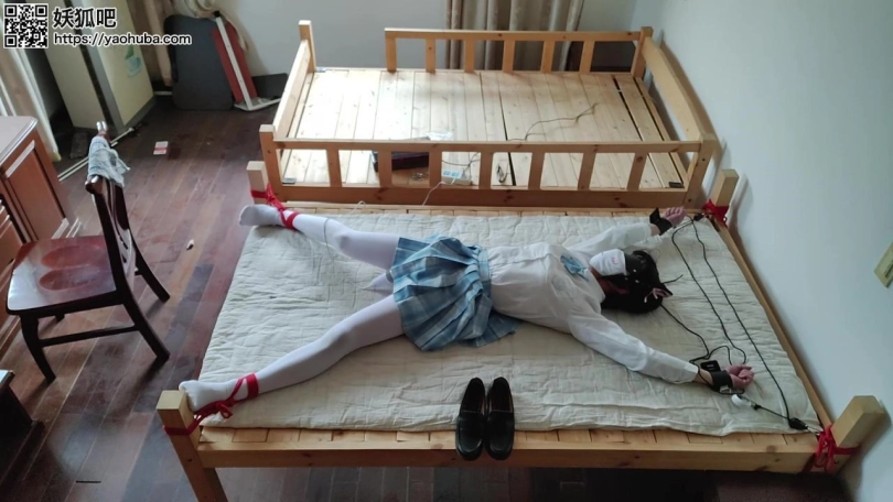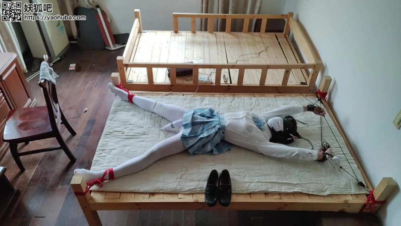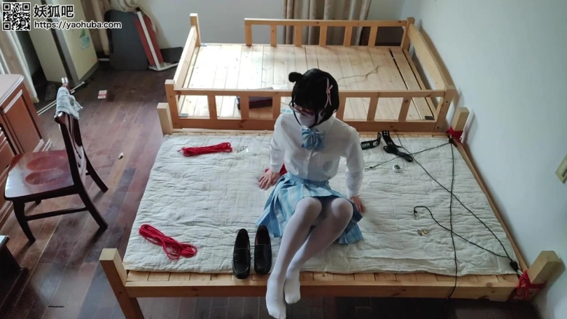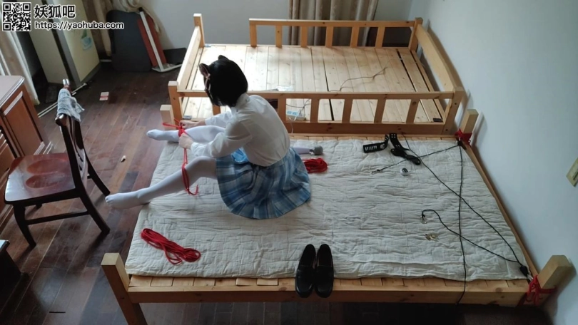 › 【坎喵】女装子白丝JK床上固定定时自缚