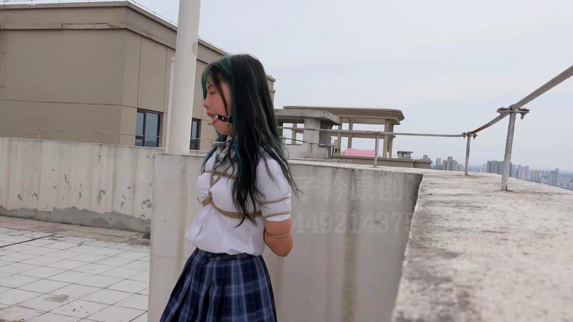 【子衿】琦琦五花口球大量口水室外挑战爬楼梯