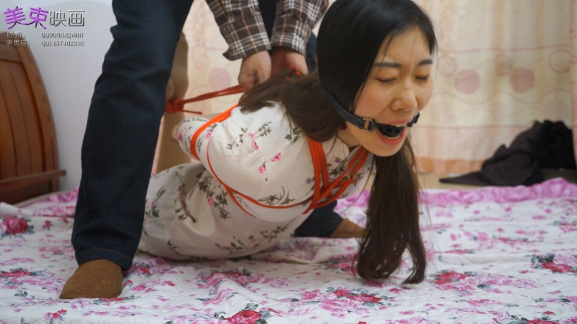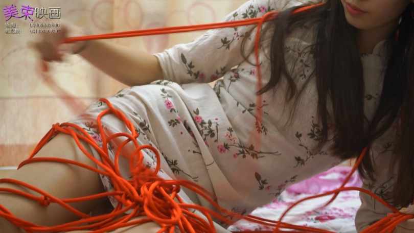 古朴旗袍与红绳更搭配,模特丝袜脚还不错,绑成驷马挠脚底很好玩。