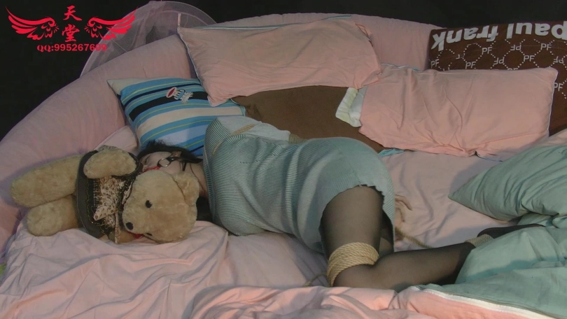 独居亚楠下班回家发现门口有人放了一只玩具娃娃,看样子挺喜欢就带回家。捡来的娃娃趁晚上睡觉操纵绳子爬上亚楠身上,从绑住手脚开始,口球嘟嘴,最后驷马捆绑。