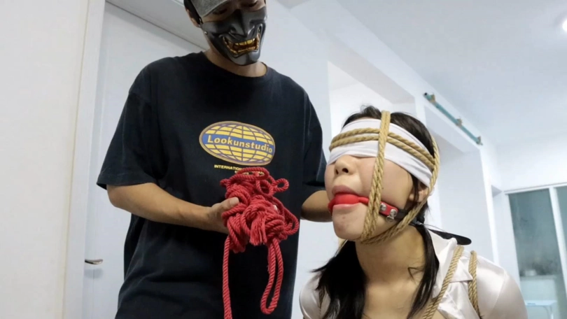 然而小妤却愤怒地辱骂他。恼羞成怒的K为她戴回口球与蒙眼布,又用绳子缠绕她的头,来惩罚她,很快小妤就晕了过去。