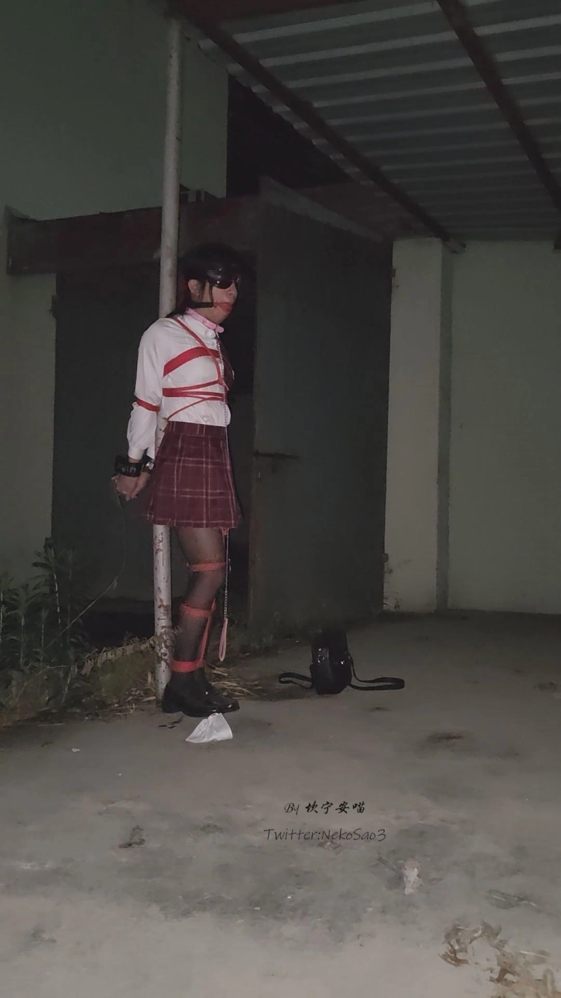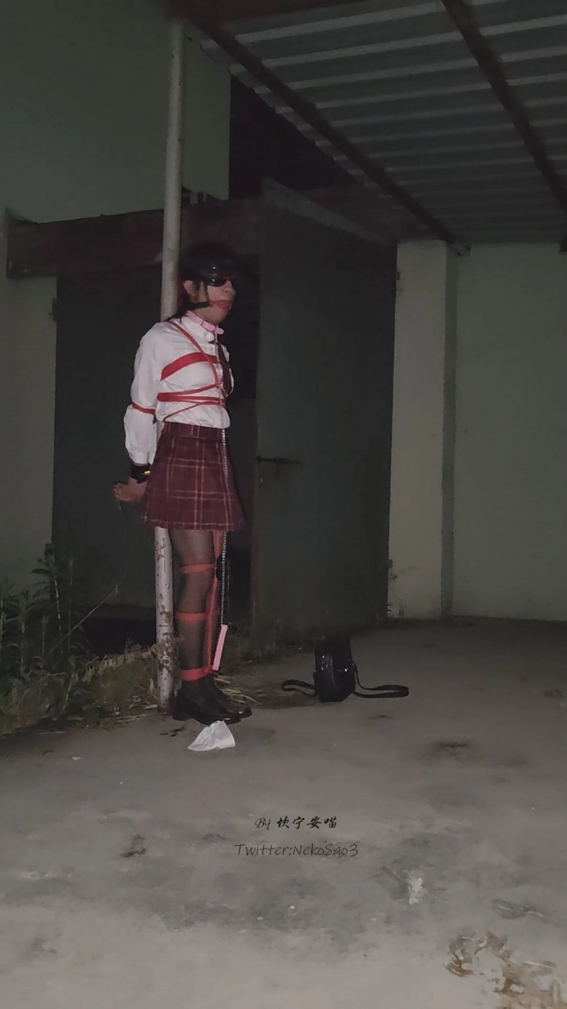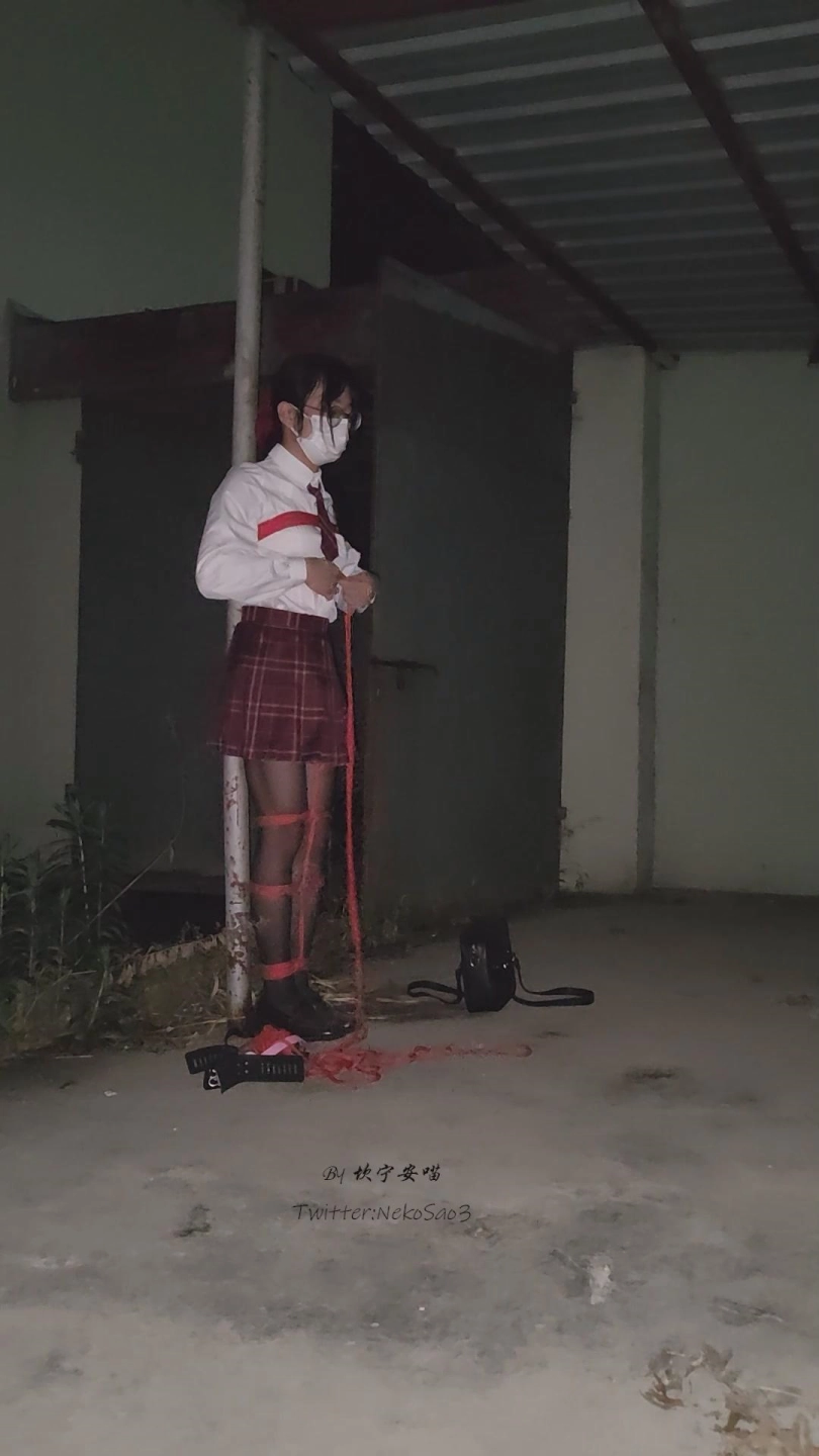自缚户外!在附近找到了一个荒废的院子,立刻行动!捆法和姿势是基础的并腿+直臂柱缚,把自己牢牢固定在柱子上,无法隐藏也无法逃走,一旦被发现就只能听天由命……