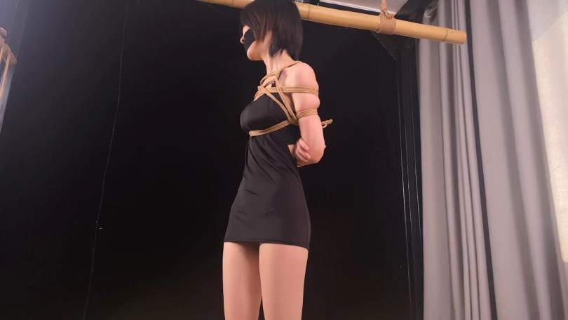 › 【象人】挣扎床缚 嗷嗷-黑色连衣裙+肉丝高跟,封住嘴巴和眼睛,固定床上,挣扎,最后被棉被包裹!