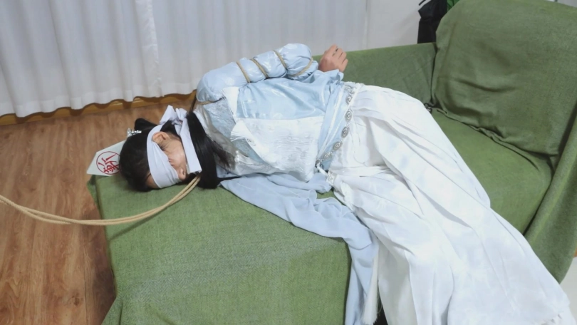 第三集的内容是押解游街和斩首内容,我印象里我做过很多这样的作品,非常喜欢把女性绑好之后被人牵着走,想象着被很多人指指点点的感觉,这样的羞辱远比单一的刑罚更折磨人,因为嘴被白布袜塞住,双手又被折断还被绑了起来的情况下,无论是逃跑还是申辩都做不到,只能一步一步的走向斩首台,自然,在那长长的古装之下,她的腿和脚踝也被绳子给限制了,只能小步小步的走动,更何况还被脱掉靴子只能穿着白布袜呢,涩!至于瞒天过海之计,也就是个小把戏了,谁不喜欢把这样一个武功尽失的前女侠留在身边当做玩物呢?