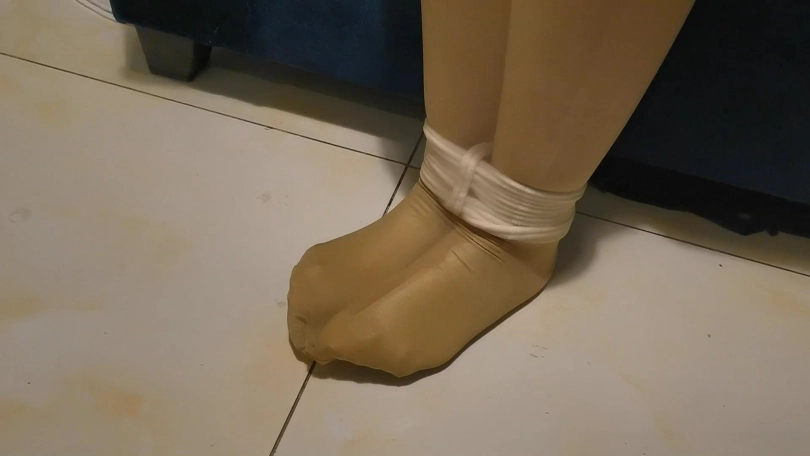 塞进假Y后提上裤袜,用丝袜将臀部绑成股绳子。Y具勒的凸起可见。将M双腿分别折叠捆绑,棒棒找准位置开始大力输出。M呻吟不断。解开她腿上的绳子,将她的双脚并拢捆绑起来。再将她的双腿套进丝袜的一条袜筒中,丝袜包裹着她的双腿,脚部的绳子清晰可见,这看上去很有感觉。用鞭子不断抽打着M,疼痛和[X_X]交替的刺激着M。不断的按压假Y使其快速的在隧道中抽C,随着速度的加快,M不断的发出很享受的呻吟,身体也开始出现抽搐。看样子是爽到顶峰了。。