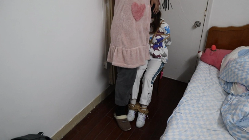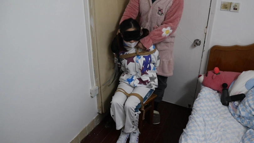 结果惨被坏人留在屋子里面捆在凳子上进行调教,我就出去玩一下就不行嘛,