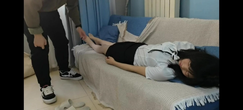 迷晕肉丝美女激辣玩丝袜脚的最后一集大结局终于来了,激辣被面具男搬到沙发上,反复捂晕了二十多次,还是无法逃掉面具男的白手帕,最终昏死过去,全程翻白眼!