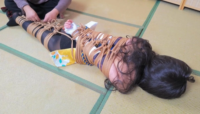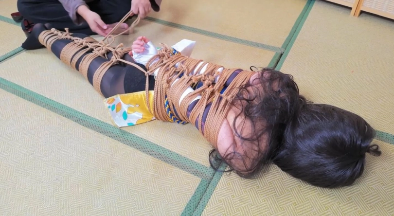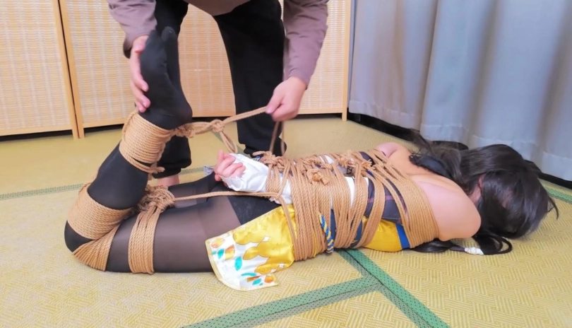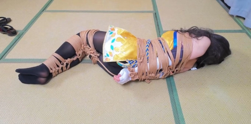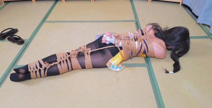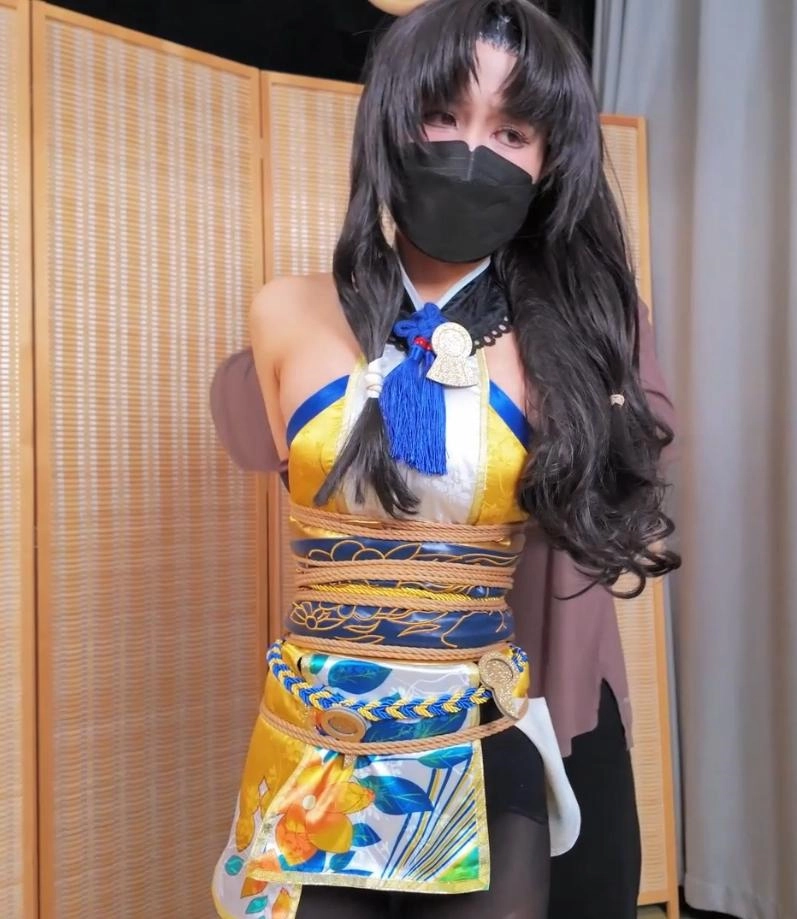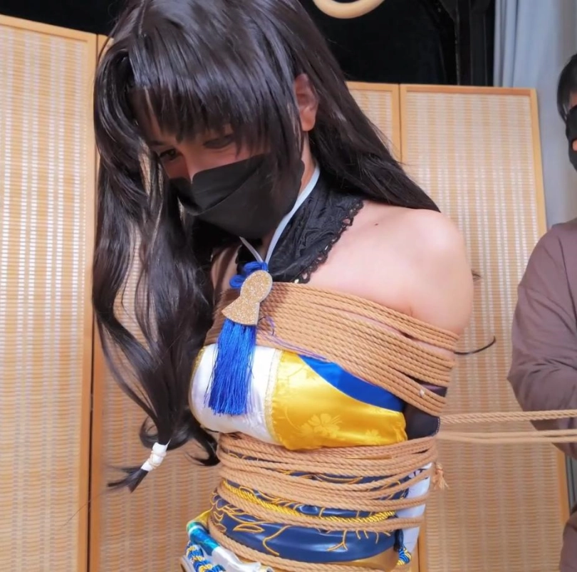 模特小O,胡桃cos,约拍之中的摄影师加入了绳子元素,一根一根的将模特给绑了起来,绳子数量庞大,绑遍模特全身,最后加以驷马捆绑,绑的她呻吟连连,呼吸困难。