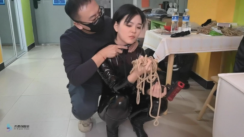 近期多名少女失踪,新手特工梦琪猜测估计是老狼干的,接到上面的指令,她来到老狼的窝点。根据房间中遗留的大量绳子和高跟鞋,推断这就是案发现场。正在梦琪查看作案工具时,老狼悄悄的从后面控制住梦琪。并用镣铐铐住她的手脚。用药物迷晕了她。当梦琪醒来时发现自己被拷在椅子上。这时老狼走来逼问是谁派她来的,梦琪拒绝回答,老狼决定给她点颜色尝尝。老狼拿来一双丝袜塞进梦琪的嘴里,外面用胶带封住,防止她吐出来。再用一条连裤袜套在她的头上,在套上塑料袋,最外面在套一层丝袜头套。任平梦琪激烈的挣扎。。。