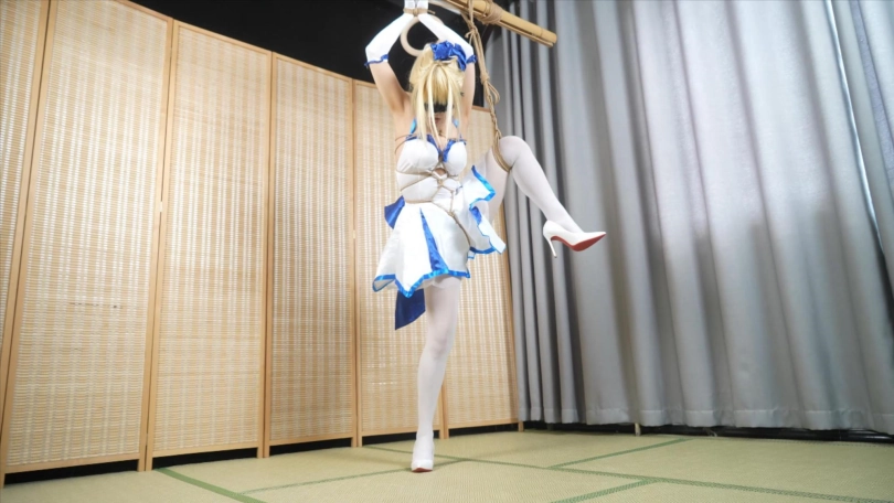 › 【象人】小0-cos Saber大小姐,深厚口球,单脚吊缚+蛇缚+M腿 4K画质!