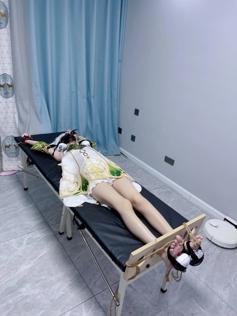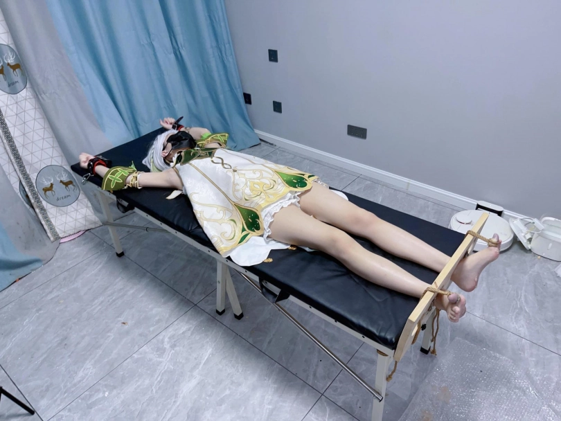 姿势:痒刑床+足枷(一定要固定脚趾)