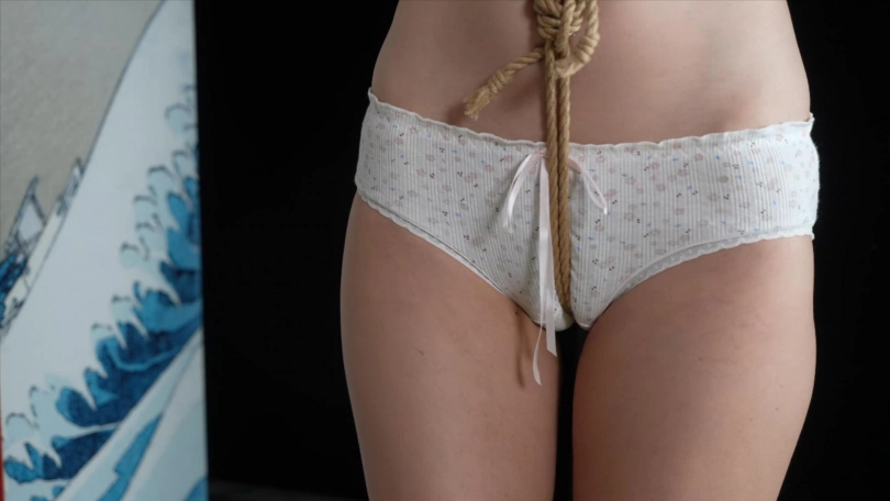 把两个股绳用绳子连接,收紧,脱下高跟鞋强迫踮脚