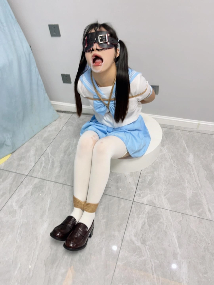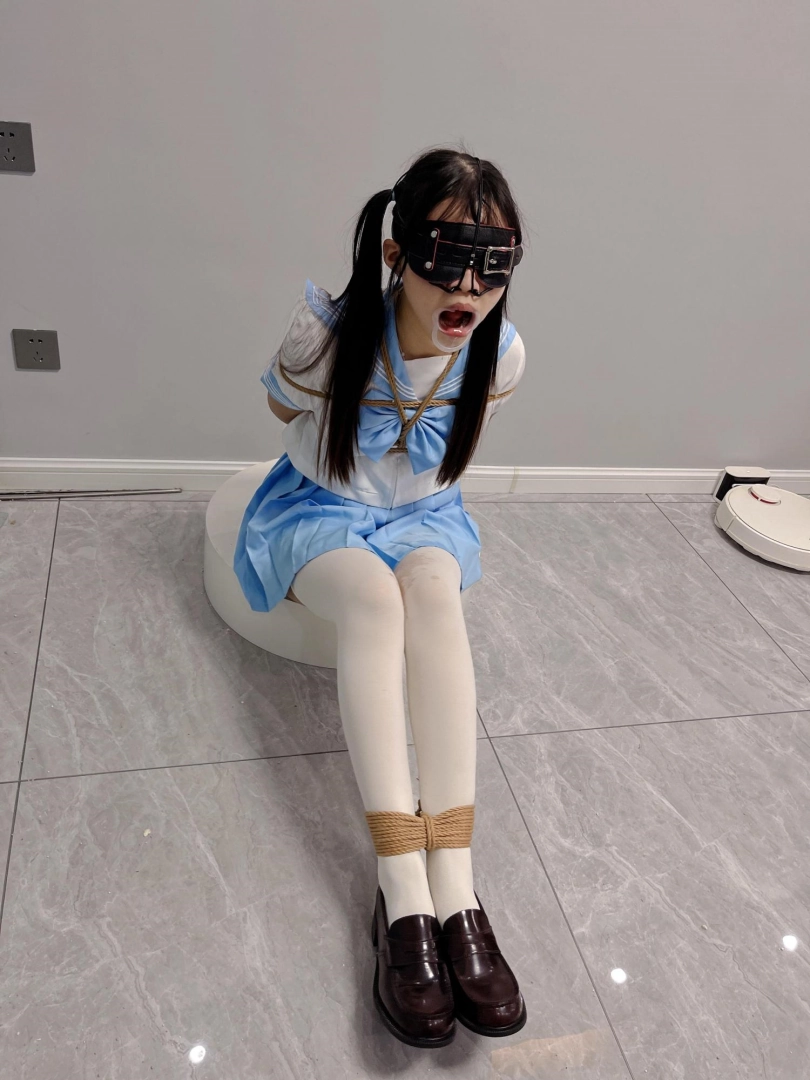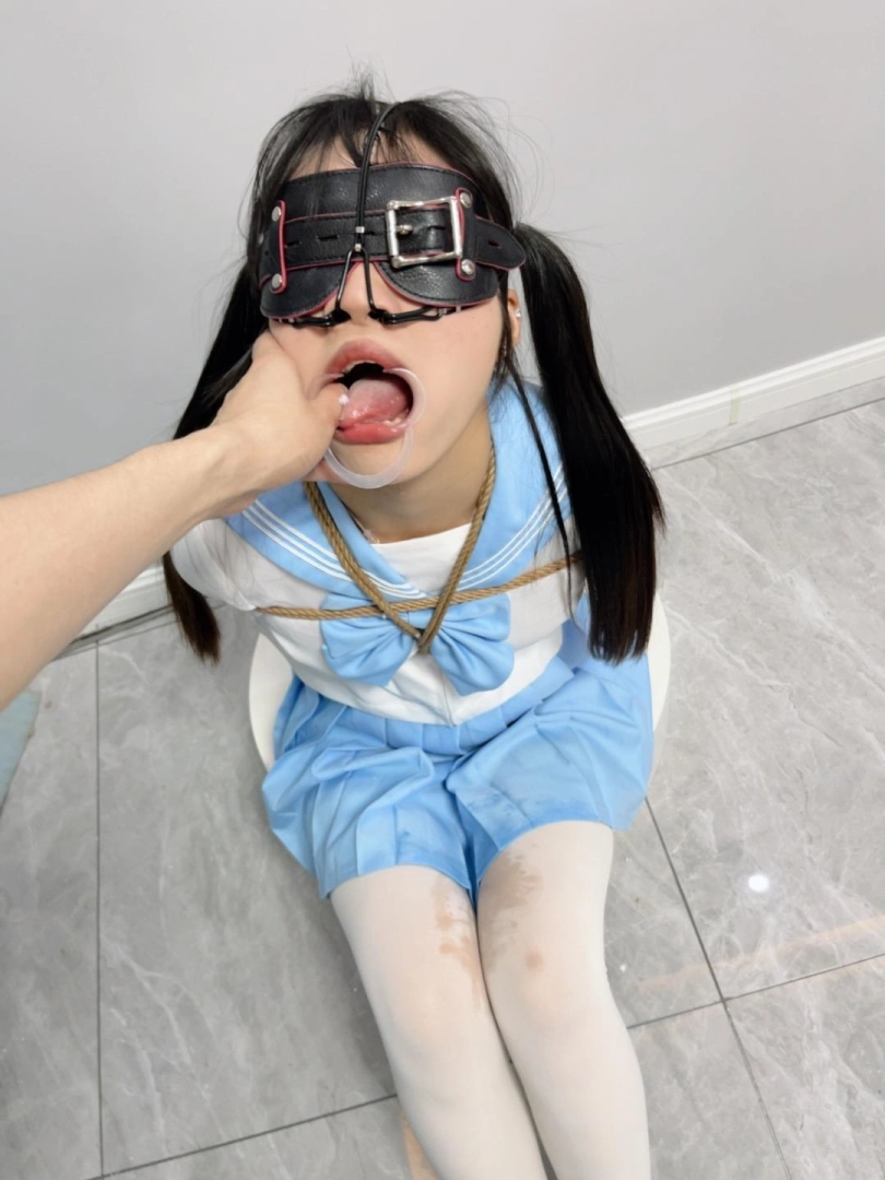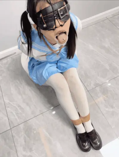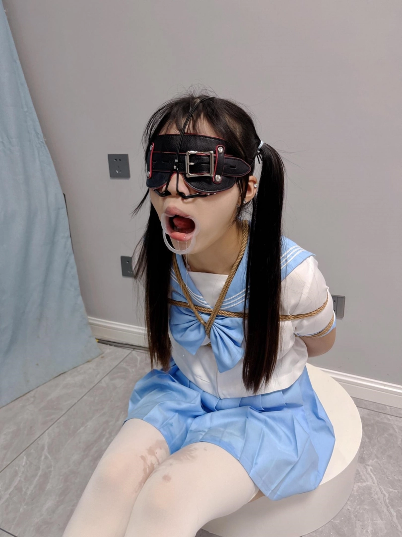 内容:首先给妹子戴上眼罩和羞耻的三向鼻钩、扩口器,鼻子一定要高高拉起到微微疼痛为止,然后把鼻钩固定在背后的绳子上强制抬头。鼻钩一戴上,妹子精致的小脸就被完全破坏了,变成了羞耻的奴隶。因为开口器的缘故,妹子无论怎样都无法控制口水的滴落,只能任由口水滴在心爱的jk裙子和白丝上。由于脚腕也被十几道绳子紧紧绑住,两条白丝小腿只能羞耻的互相磨蹭,可爱极了~