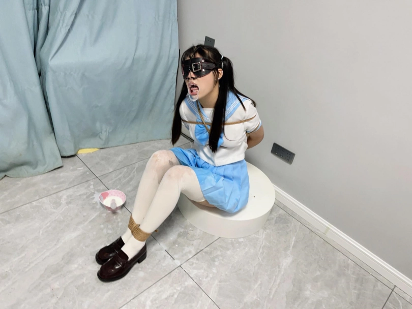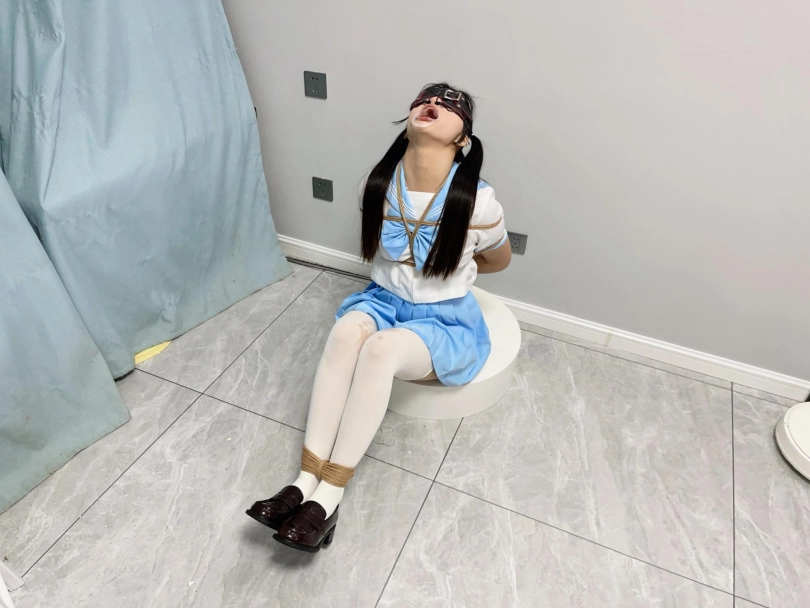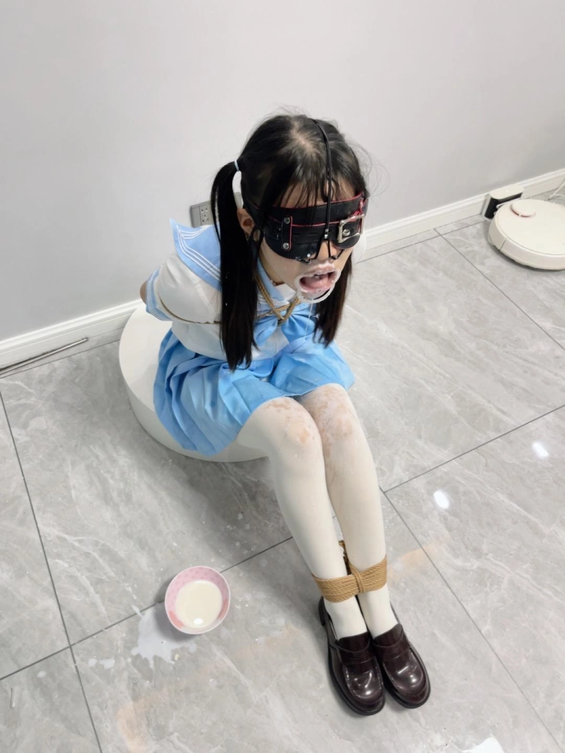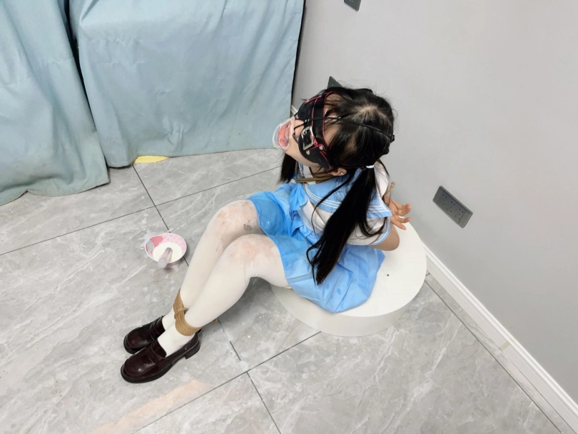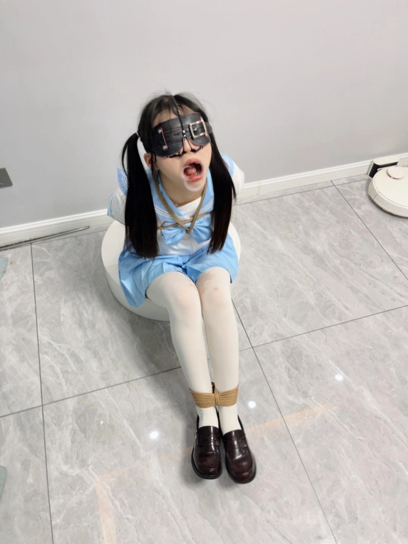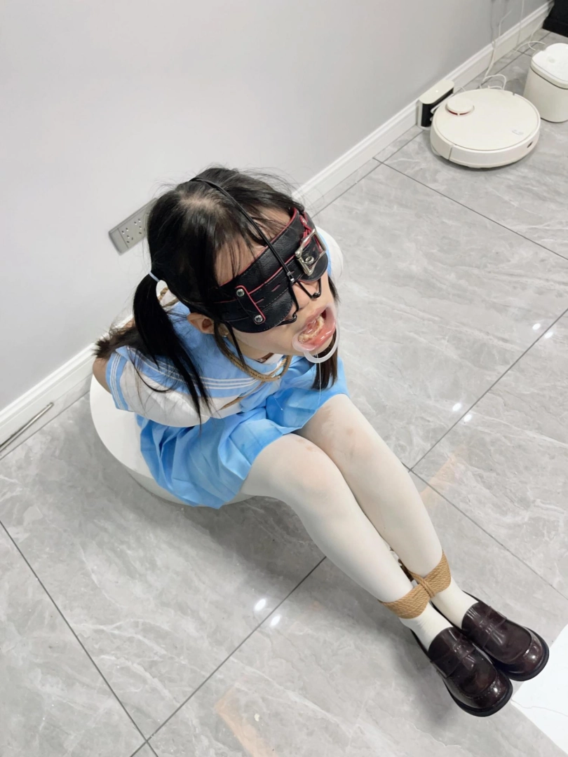 内容:首先给妹子戴上眼罩和羞耻的三向鼻钩、扩口器,鼻子一定要高高拉起到微微疼痛为止,然后把鼻钩固定在背后的绳子上强制抬头。鼻钩一戴上,妹子精致的小脸就被完全破坏了,变成了羞耻的奴隶。因为开口器的缘故,妹子无论怎样都无法控制口水的滴落,只能任由口水滴在心爱的jk裙子和白丝上。由于脚腕也被十几道绳子紧紧绑住,两条白丝小腿只能羞耻的互相磨蹭,可爱极了~