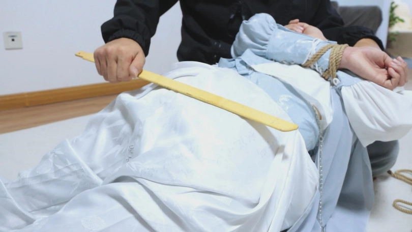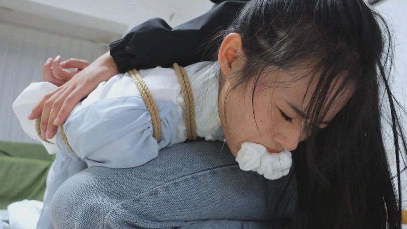 【亮点】新模特语汐女侠古装登场+被贼人暗算中毒,被东洋绳缚术绑住+依靠腿功奋力反抗,然而却被脱掉靴子,点了穴道动弹不得+被贼人用丝绸手帕堵嘴后极限驷马,如果不能挣脱的话将会武功尽失,变成废物美女。