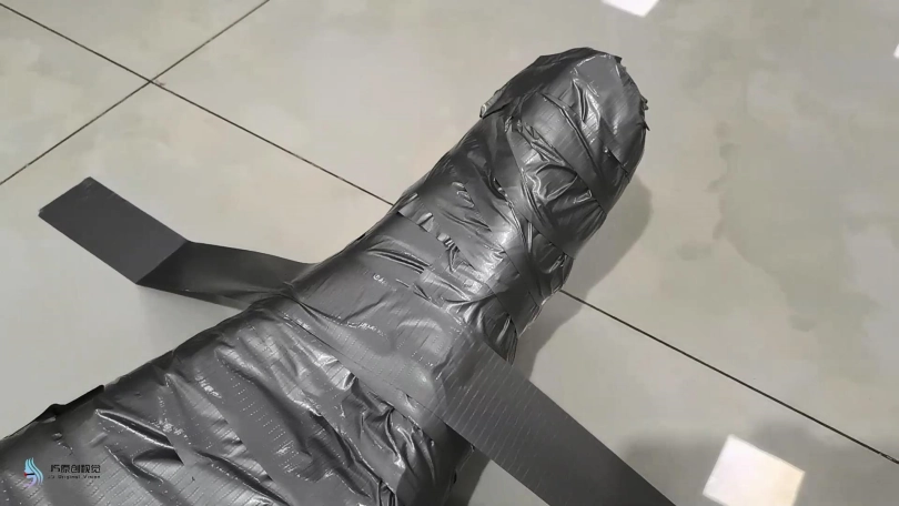 你把她放在地板上,拿出许多卷胶带。你脱下她的高跟鞋。她可以穿长衣服/连裤袜,以确保它不会粘在她的皮肤上。你用胶带把她的整个身体做成木乃伊,确保它尽可能地紧绷和整洁。你做了多层,以确保她非常安全。你把她的手臂绑成木乃伊的姿势,我可以举个例子。对于她的头/脖子,你用Saran wrap包起来,然后用胶带把它做成木乃伊。你戳她的鼻孔,给她的嘴开一个洞。你还为她的马尾辫留出了空间。然后,除了鼻孔/嘴巴之外,她的整个身体都会用胶带粘在地板上,一条长长的胶带放在地板上横跨她的身体,并固定在另一侧。你这样做是为了完全覆盖她的身体。