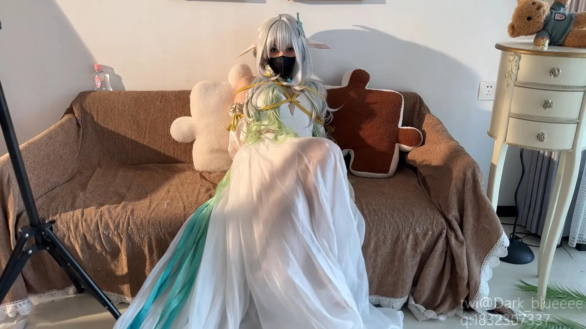 模特雁一x泽楼cos大慈树王两套设定进行拘束,开腿打屁股+沙发放置,正片包含双视角