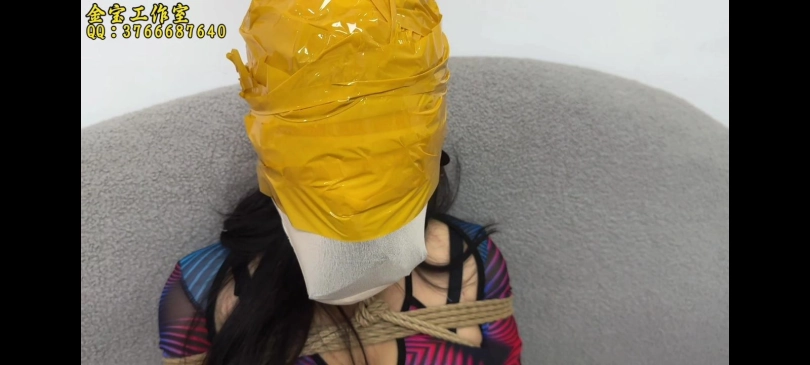 整条原味丝袜塞到嘴里,戴上[X_X]口球。拿起一条原味丝袜,放到鼻子闻味用银色胶带粘住,博士:一呼吸就能闻到酸爽的味道非常刺激。女侦探被熏的一直干呕,拿纱布将眼睛缠住,再缠上黄色胶带。戴上白色电击项圈说明带电就行打开后模特给点反应。继续鞭打她,电击她,女侦探只能挣扎,期间一会定身挠痒电击折磨,一会解开折磨她,疯狂挠她的腋下和脚丫,女侦探只能挣扎,博士把电击项圈开到到最大,女侠浑身抽搐。折磨个十几分钟,博士准备把她送到淫窟,拿定身器把她定住,女侠便无法动弹,然后拿出丝袜把她的头包起来,外面用胶带缠几圈,女侦探听不到看不见,怎么打怎么挠都没有知觉,女侦探就像一具雕像一样被绑在这里。然后给特写。
