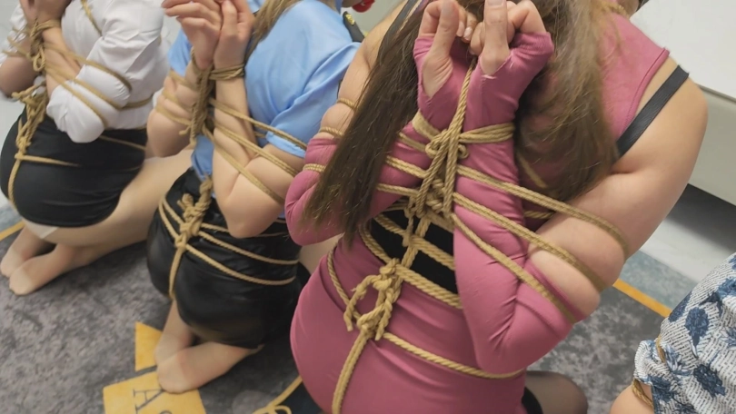 四个美女经过一阵Tj,被换上各种制服准备出售,先给老大过目,然后关押起来准备运出。