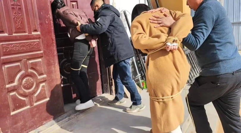 两名歹徒盯梢这两名大学生,经过一段时间盯梢,终于有机会在一个小树林两名堵住了两名大学生,把她们挟持到了荒废的院子两名进行折磨。
