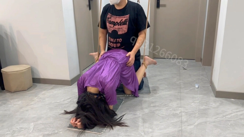 刚洗完澡准备去睡觉的m,从洗手间走出来,被发现穿了一件紫色的性感连衣裙睡衣,,这样给力的战袍怎么逃得过主人的欲望之火,二话不说,先捆了再说,,,一顿无情的把玩过后,开始尖叫求饶,过程特别劲爆,最后只能以微弱的呜呜声发出求求你,放过我,让我睡觉吧!的声音,结果等来最终只能被捆绑吊缚在卧室门口过夜的下场!!